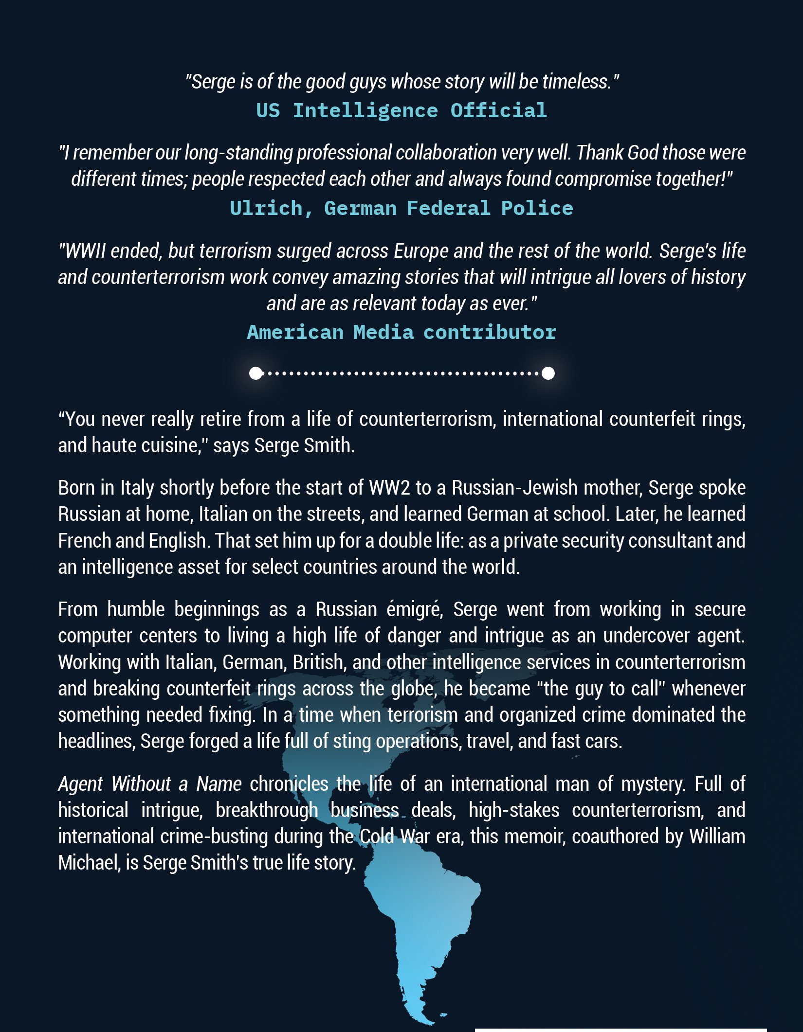 Agent Without a Name chronicles the life of an international man of mystery. Full of historical intrigue, breakthrough business deals, high-stakes counterterrorism, and international crime-busting during the Cold war era, this memoir, coauthored by William Michael, is Serge Smith’s true life story.